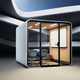 Framery Six es una sala de reuniones inteligente e insonorizada, diseñada para alojar hasta seis personas y crear un espacio ideal para sesiones de colaboración en equipo, ya sean presenciales o virtuales. Con aislamiento acústico de Clase A, Framery Six garantiza que las conversaciones permanezcan privadas, convirtiéndose en una opción ideal para oficinas abiertas que necesitan espacios de reunión confidenciales. La ventilación adaptativa refresca el aire cada minuto, mientras que la iluminación automática proporciona el ambiente óptimo para trabajo concentrado o videollamadas.