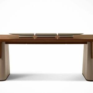 ”Una bellísima mesa, que podemos imaginarnos como un escritorio de casa, o acompañado por su módulo de servicio como equipamiento de mi despacho, pero también, en una refinada sala de reuniones y, porque no, tal vez redondo, en mi casa y en la vuestra”. (Claudio Bellini)