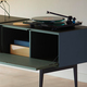 La gama de acabados y colores, desde MDF lacado hasta chapa de madera, permite personalizar cada módulo según su estilo. Además, el sistema ofrece una gestión eficiente de cables, manteniendo un aspecto ordenado. Todos los componentes son desmontables para facilitar la reutilización y el reciclaje, alineándose con los principios del diseño sostenible.