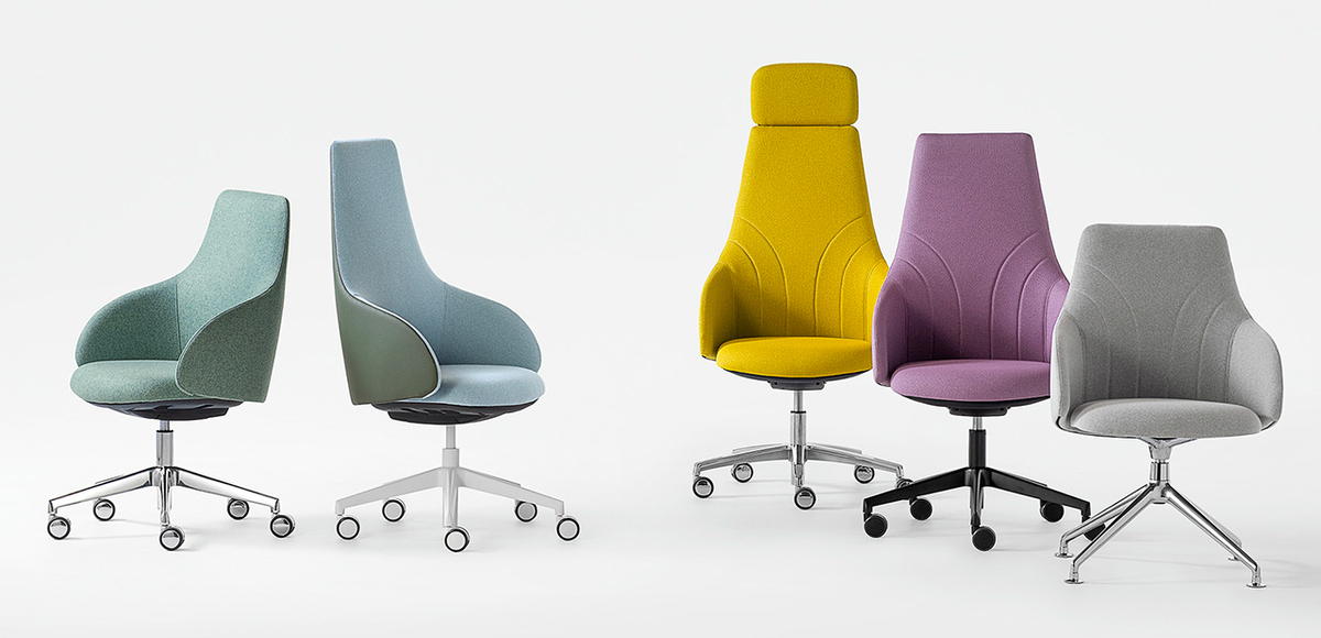 La silla de oficina Kontea de Kastel: un diseño moderno con líneas suaves y envolventes para ofrecer el mejor confort. Kontea es una gama de sillones para áreas ejecutivas y de espera con amplias funciones ergonómicas, perfectos para añadir un toque distintivo a entornos profesionales. Un sillón ejecutivo acogedor y elegante, pero al mismo tiempo funcional y dinámico, adecuado tanto para oficinas modernas como clásicas. Amplia gama de tapizados, con respaldo bajo o alto, con o sin reposacabezas, disponible también con mecanismo sincronizado autoajustable incorporado en el asiento con sistema deslizante. Diferentes soluciones para amueblar áreas de espera o salas de reuniones con un toque refinado y personal. Kontea te permite elegir entre un respaldo liso o con costuras lineales, entre varios tipos de tapizados, monocromáticos o bicolores, y diferentes opciones de bases fijas o giratorias.