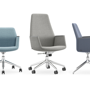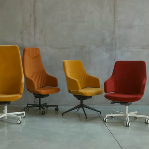 Esta silla ejecutiva de diseño presenta una forma suave y acogedora, con respaldo ergonómico y reposabrazos integrados. Disponible en versión giratoria o fija, Synua se adapta perfectamente a entornos directivos o zonas colaborativas. Con opciones como sillas de reunión con ruedas, diversos acabados de tapicería y bases personalizables, ofrece máxima versatilidad para proyectos contract y oficinas modernas.